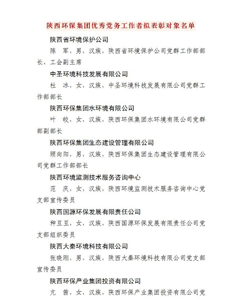 中共陕西环保产业集团有限责任公司委员会