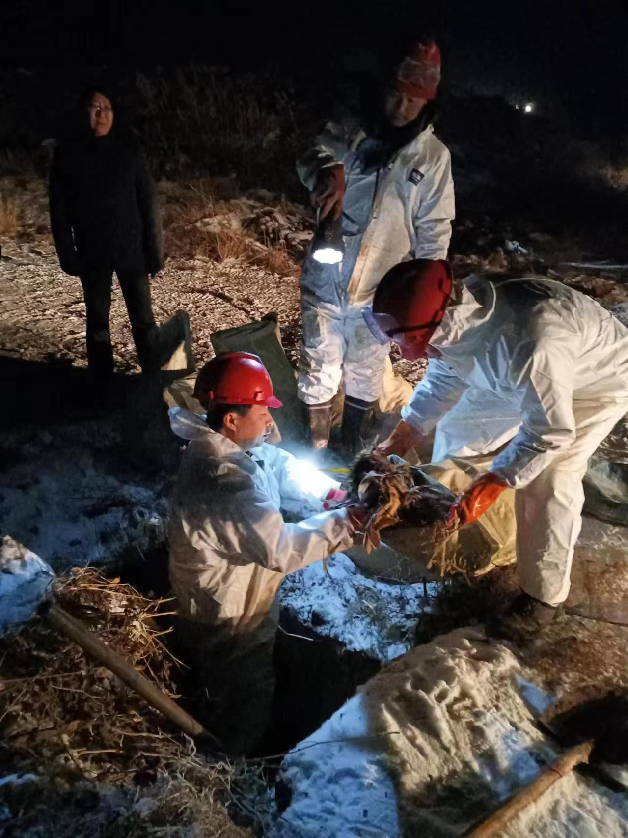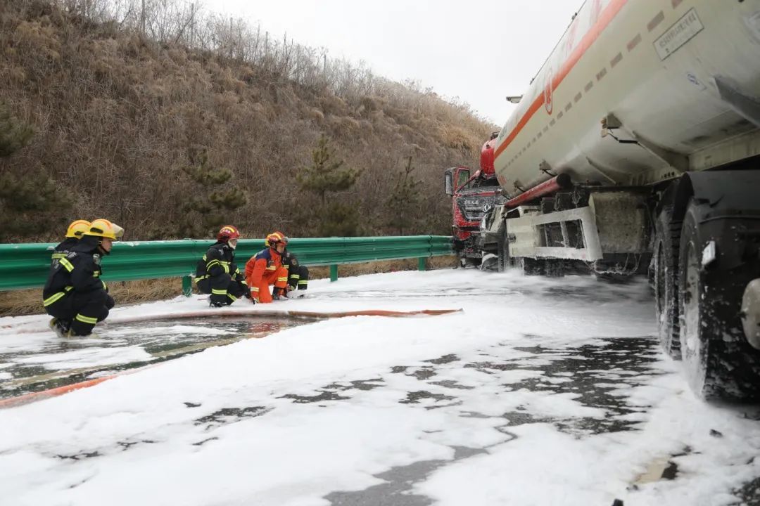 风雪交加,国道沟深路滑,应急救援车行驶了近7个小时后到达现场开展泄漏污染物清理工作。由于现场无法使用机械设备,新天地公司应急救援队人员只能穿好防护服进行人工清理。零下8℃的雪天,队员们大汗淋漓,人群中冒出一股股热气。经过近6个小时的紧张作战,直至深夜,现场共清理污染油泥9.38吨,均运回省危废处置中心安全处置。