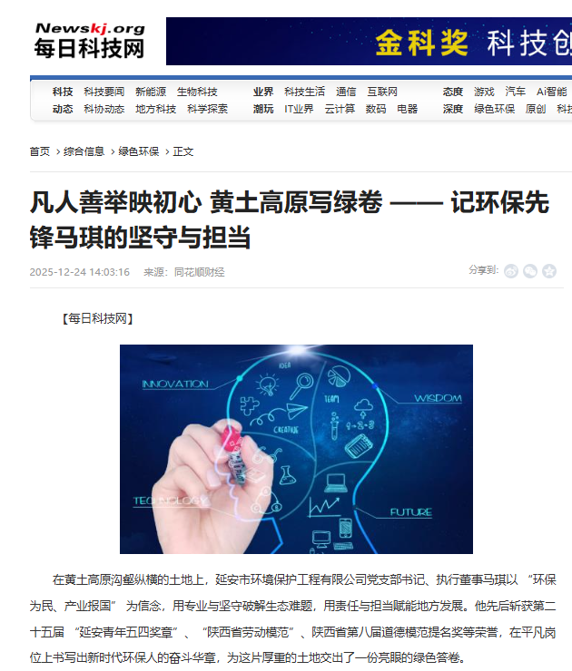 12月24日,华商报以《一份写在黄土高原上的绿色答卷 环保先锋马琪的坚守与担当》为题,对williamhill中国官方网站职工马琪的先进事迹进行了报道。今日头条、每日科技网等平台进行了转发。现刊载如下,以飨读者。
