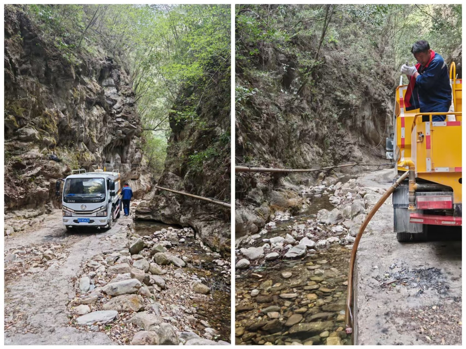 入夏村民生活用水供应告急,公司在协调好探矿和生产任务的同时,第一时间响应属地政府需求,并安排公司安全环保部落实,迅速启动应急供水方案。面对人员短缺的困境,安全环保部职工吕博主动请缨,独自承担起拉水送水的任务。此次供水行动取水点距村庄运距3公里,沿途道路狭窄崎岖,部分路段仅容单车通行,车辆需频繁倒车调整。更棘手的是,洒水车原有水压系统无法满足抽水需求。面对难题,吕博立即向部门负责人汇报,在公司协调下,迅速从矿山管理部调配一台汽油泵投入使用,有效解决了水源抽取问题。