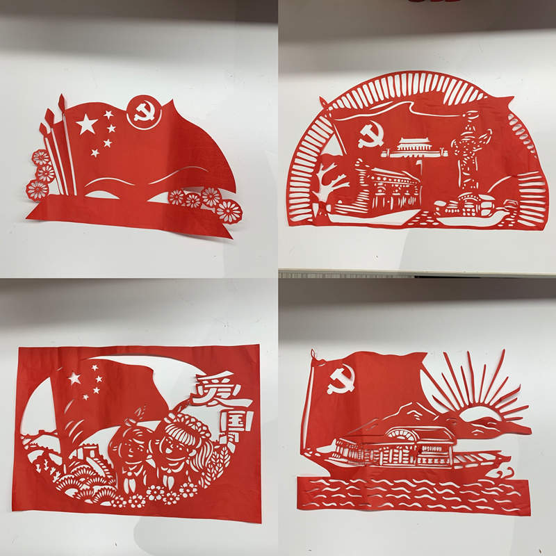 活动中,大家对照着图案纹理,一步一步认真剪裁雕刻,将对党和国家的美好祝愿融入剪纸作品中。在相互学习中,活动接近尾声,大家看着手中一幅幅精美剪纸,自豪感油然而生。